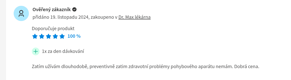 - Ve složení nám chybí více látek – Například glukosamin, chondroitin a MSM.
